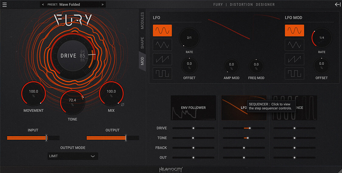 Fine-tune the modules, and adjust your parameters — with access to various controls like gate, feedback, and pre/post distortion EQs you can get more precise with your sound. The LFO, Envelope Follower, and Sequencer can add subtle movement, reactivity, or rhythmic complexity — resulting in a unique, hand-crafted distorted signal.