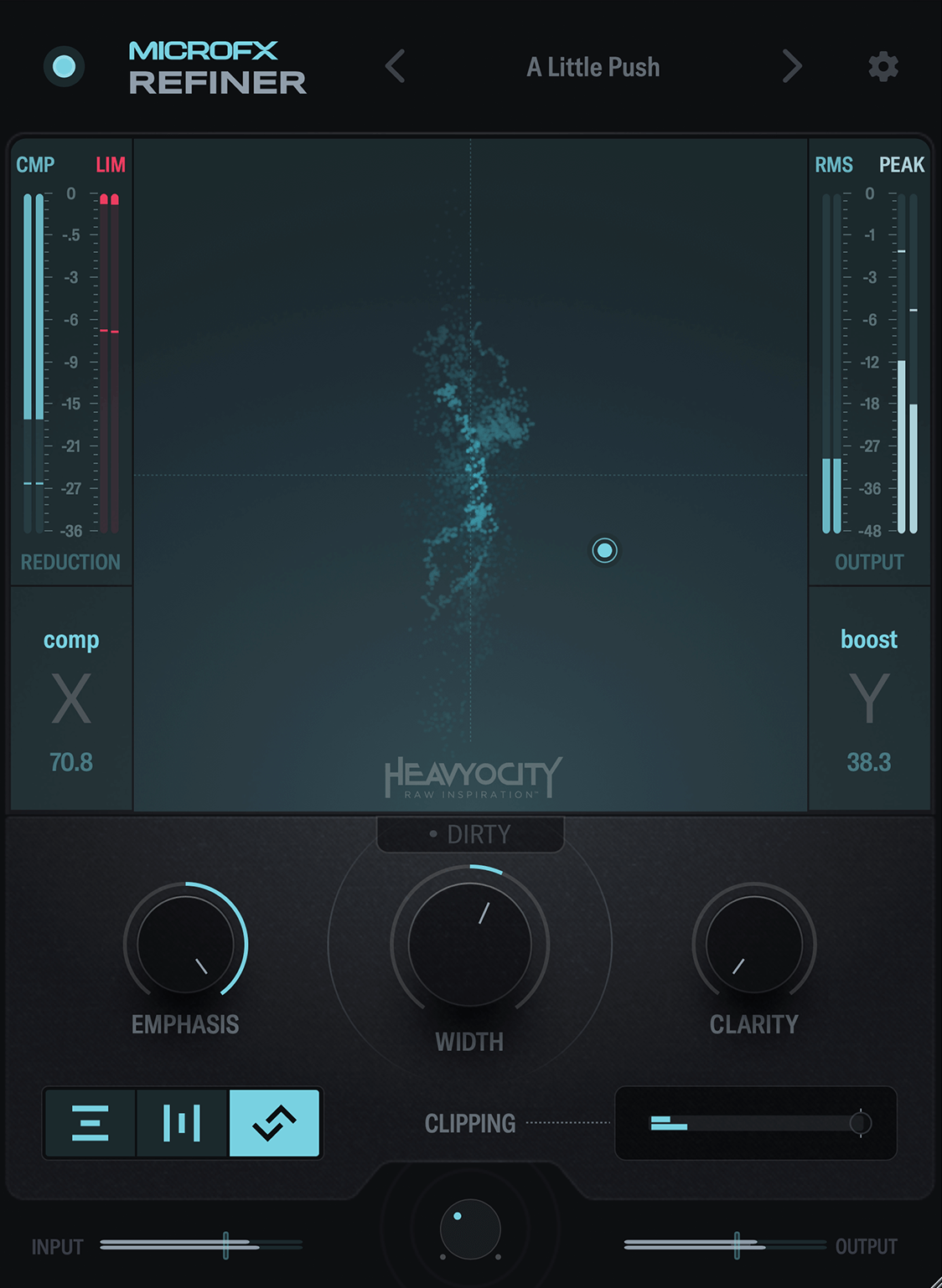 - Emphasis, Width, Clarity, Clipping, and an extra Dirty option provide additional control of your sound